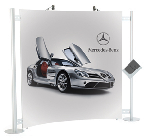 - Available in curved or straight or X-shaped frame configurations each offering single or double sided display