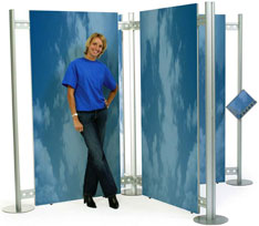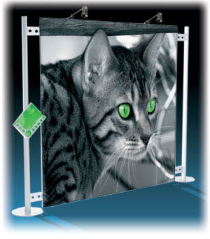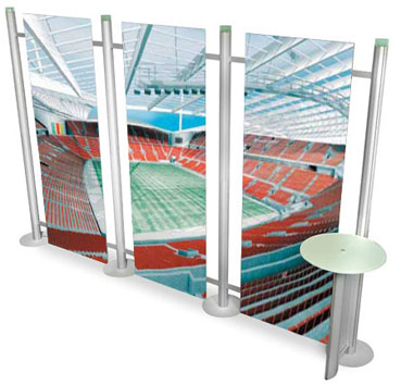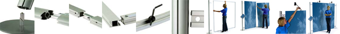 An innovative range of contemporary graphic display structures. Features include sleek satin anodised aluminium profiles and magnetically mounted graphic panels for a smooth seamless appearance. There is a wide selection of system configurations available. |